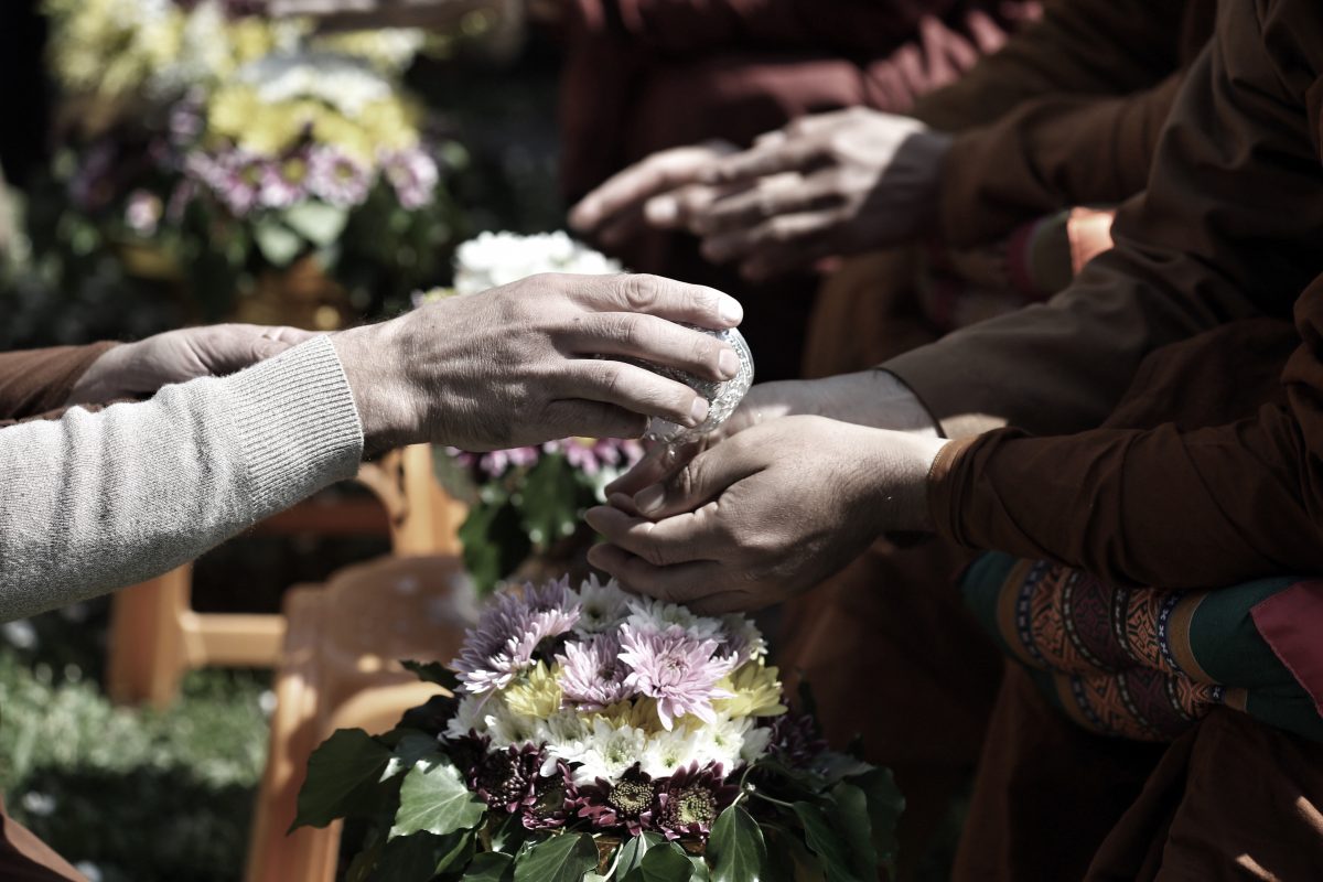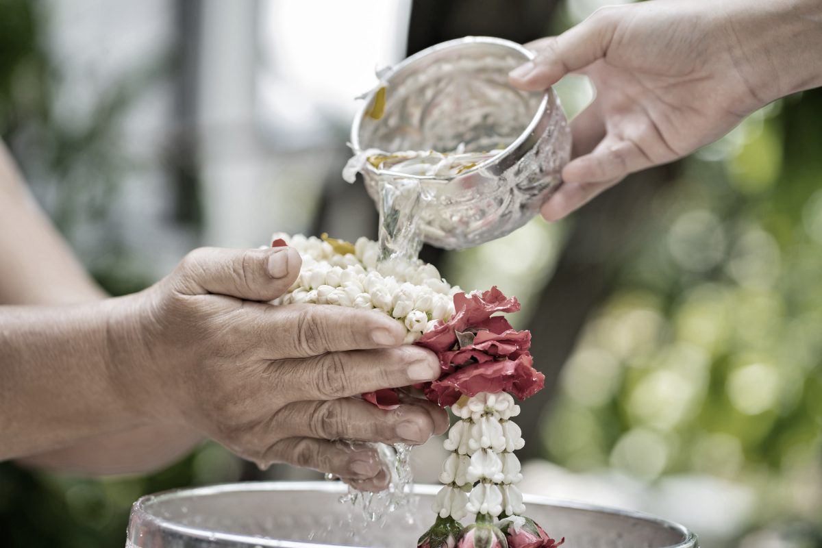 Auch das respektvolle Übergießen der Hände von Mönchen mit Wasser gilt als Bitte um Segen für das kommende Jahr.