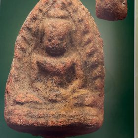 Gefertigt wurde dieses Stück aus Nuea Din Phau, einer Tonmasse, die mit grob zerstoßenen heiligen Steinen angereichert wurde. Da die Amulette von Hand geformt und im Ofen gebrannt wurden, ist jedes Exemplar ein Unikat. Unterschiede in der Hitzeverteilung sorgten für individuelle Farbnuancen. Bei diesem Amulett sind die Fingerabdrücke des Herstellers noch deutlich sichtbar – ein Zeichen für seine Echtheit und Originalität.